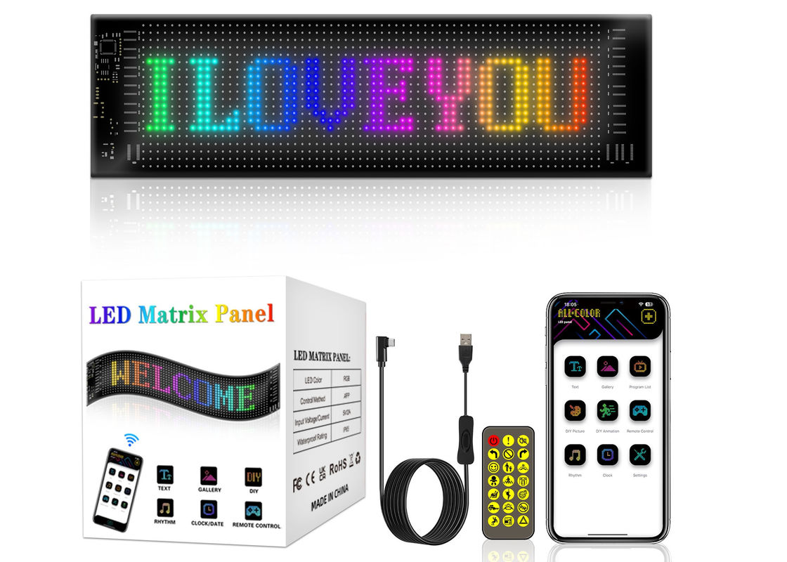 Panneau d'affichage LED à contrôle par application 20*64 Flexible USB Programmable Personnalisé Défilement de Messages Panneaux de voiture Affichage numérique